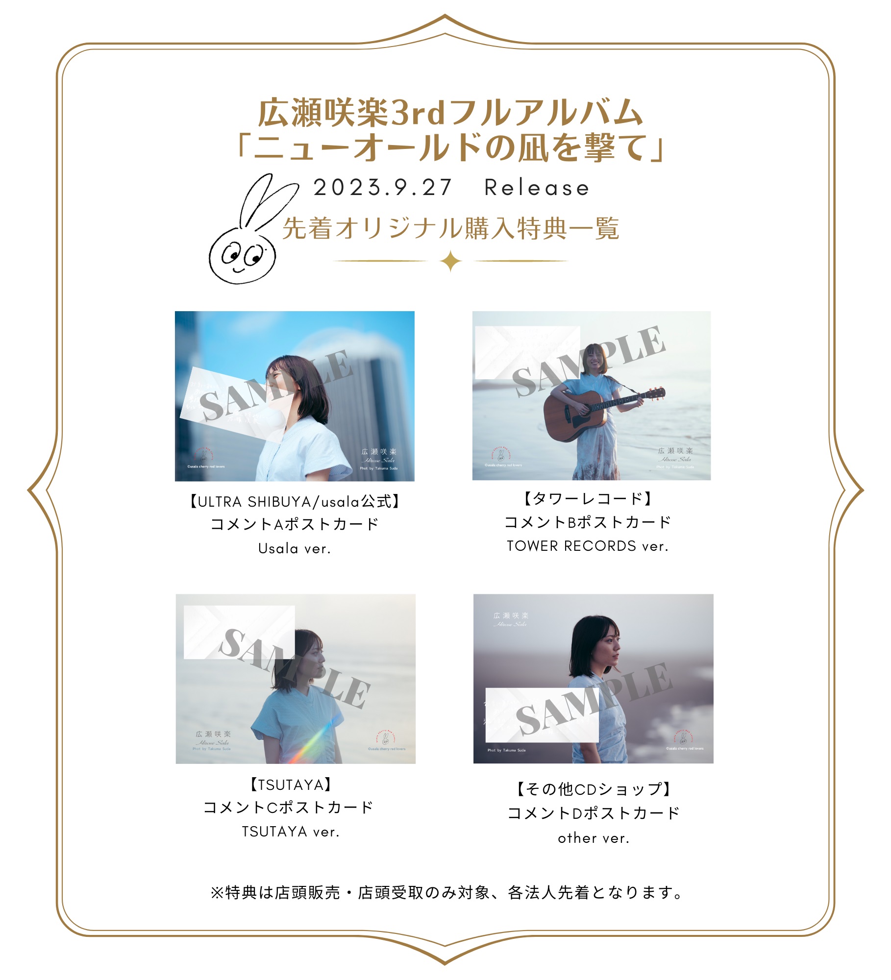 各所ショップ別特典も公開。アーティストオフィシャルショップ、ULTRA SHIBUYA、TOWER RECORDS、TSUTAYA、他店舗の